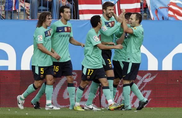 Goles en el primer tiempo: 13m. Lionel Messi (B), 25m. Raúl García (A) y 33m. Piqué (B)